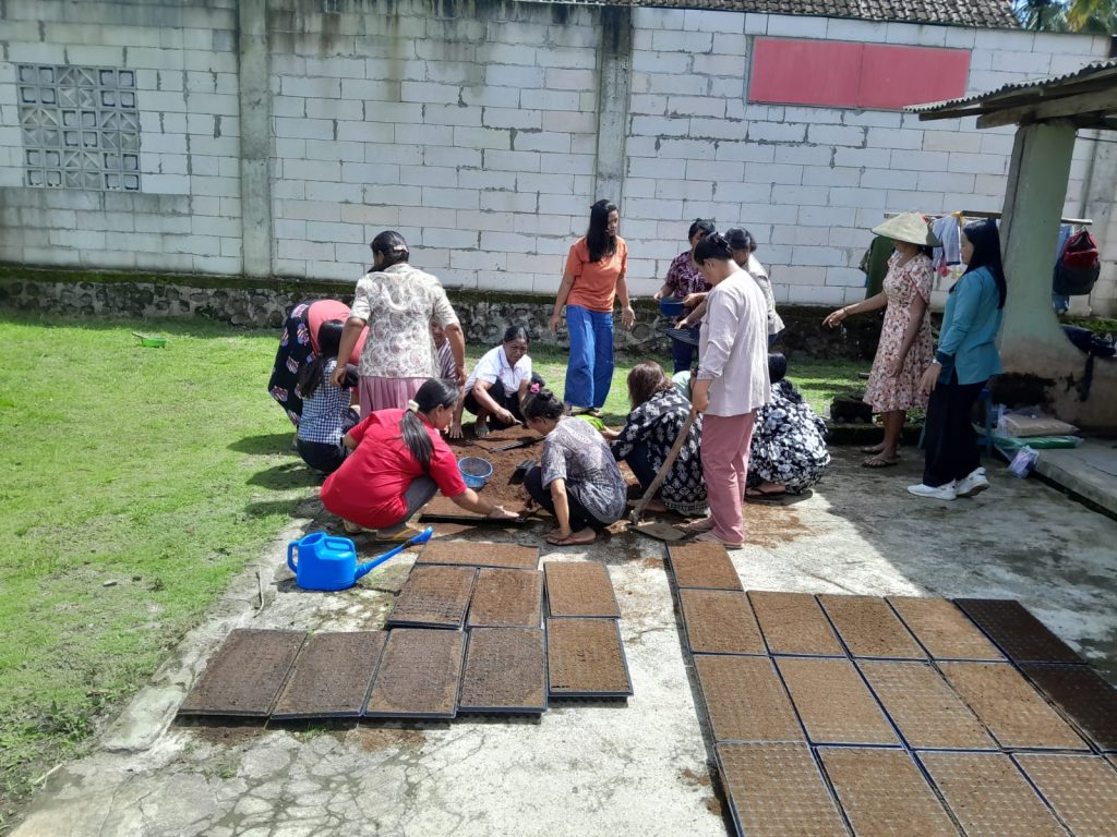 Agenda utama pertemuan kali ini adalah kegiatan penyemaian bibit tanaman yang dilanjutkan dengan pembagian bibit dan media tanam kepada anggota KWT. Kegiatan ini merupakan langkah strategis untuk mendukung penguatan ketahanan pangan di tingkat desa sekaligus memberdayakan peran perempuan dalam sektor pertanian.